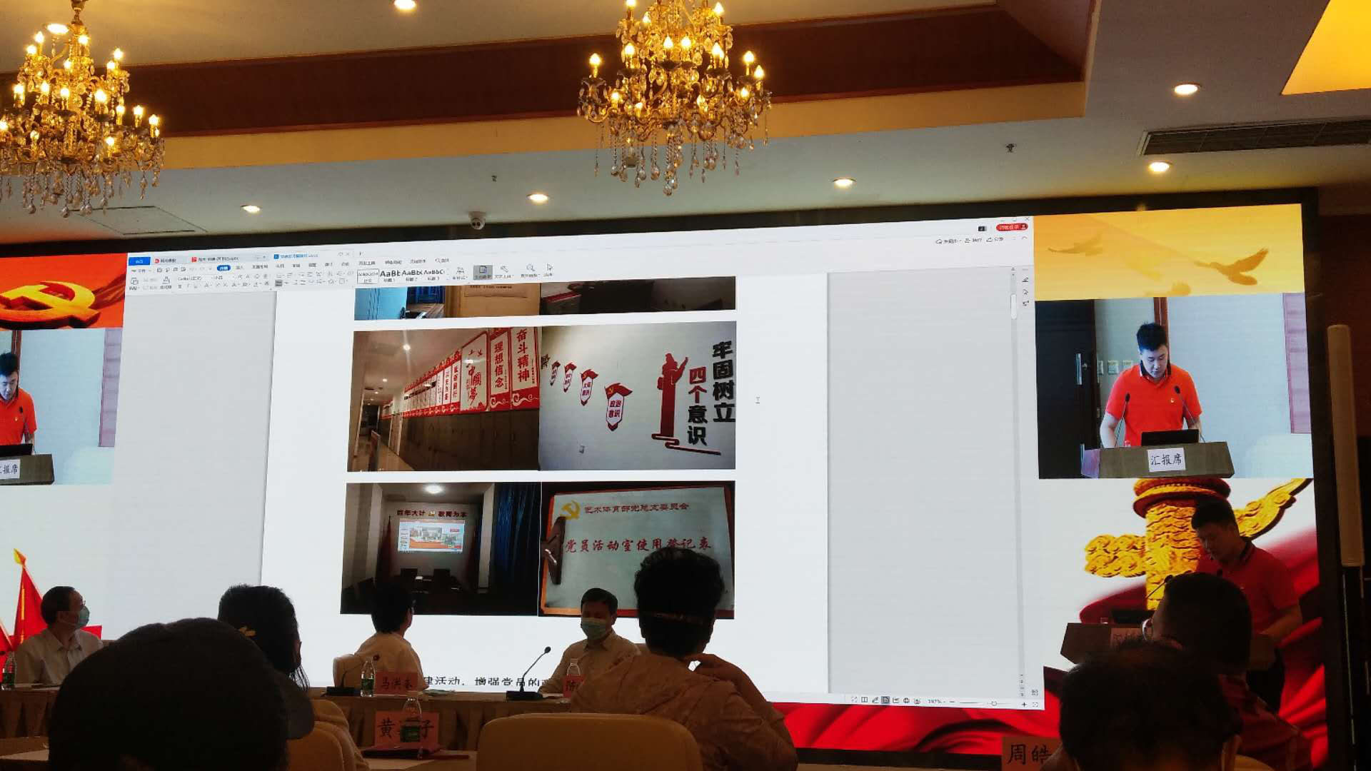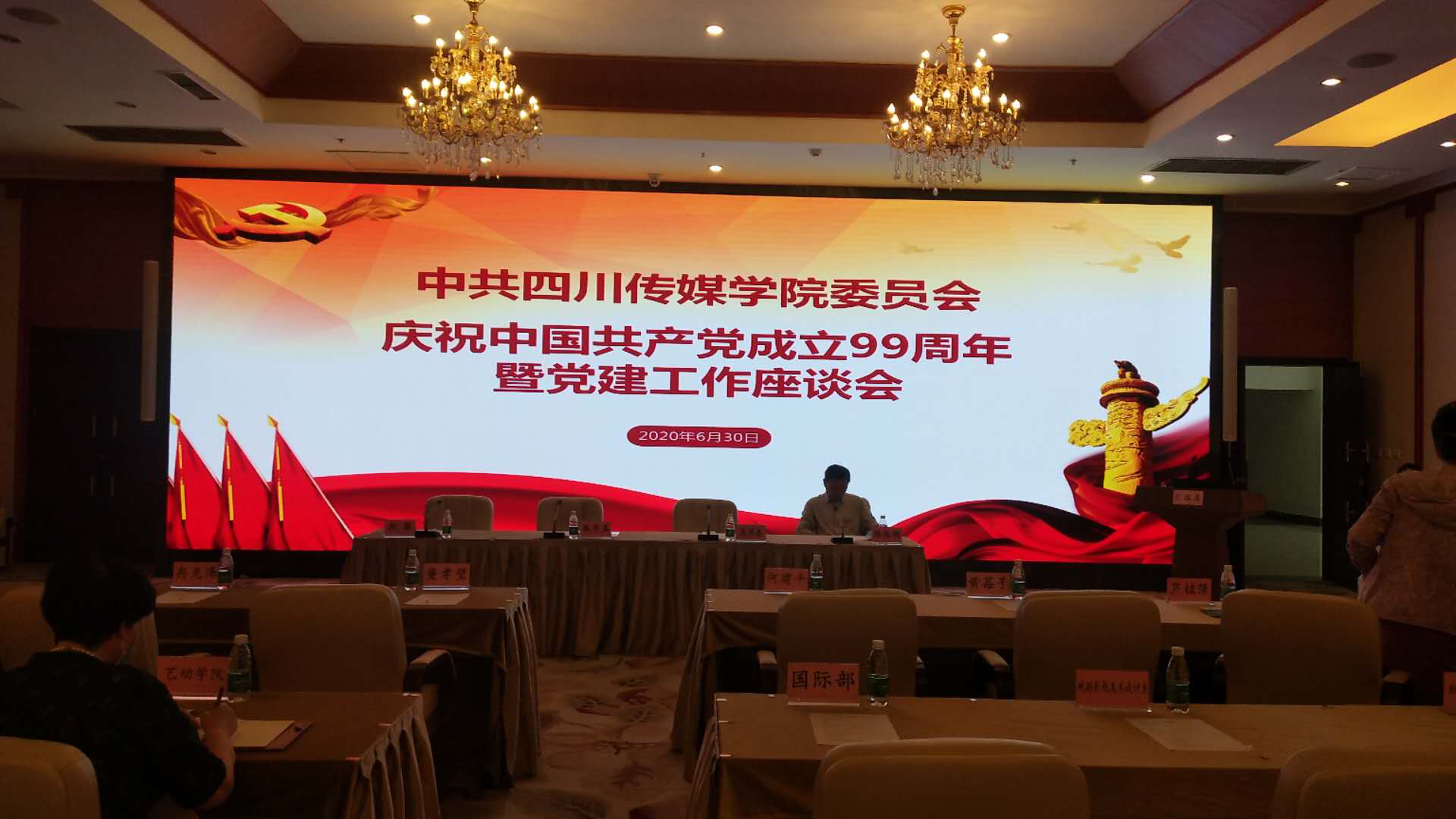 为纪念中国共产党成立99周年,总结交流党建工作经验,表彰“党员活动室”建设先进单位,6月30日上午9:00时,学校于艺体中心多功能厅召开庆祝“庆七一”座谈大会,校党委委员,各总支、支部书记,总支、直属支部组织委员参加此次会议,校党委副书记陈俊明主持此次会议。