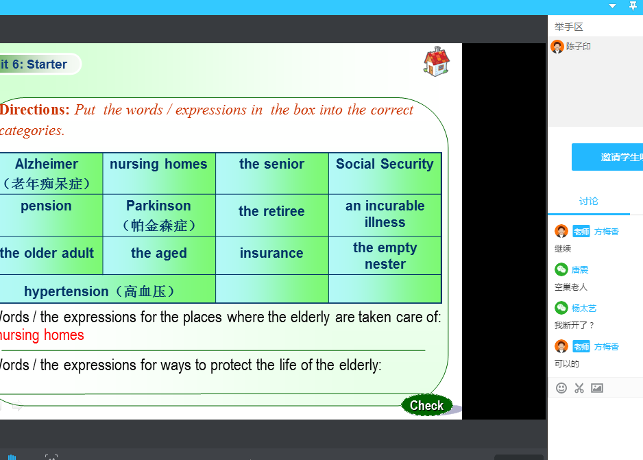 方梅香老师利用目前高效的网络平台和网络资源,把“直播+任务”结合起来。尽可能把提升听力阅读能力、扩展知识等教学资源提供给学生,拓宽学生的知识面。在日常教学中,方老师除了在教学平台进行直播授课外,坚持每节课都实时在学习通平台发布针对本节课的作业和任务,并且及时给予批阅,课后会根据学生的作业完成情况,通过微信群及时和学生沟通,了解学生的困惑对学生进行答疑。方老师还督促学生上课做笔记,下课后把课堂笔记拍照上传至平台或微信群,以这种方式让学生能够静下心来,动脑、动眼、动笔,提高课堂效率。