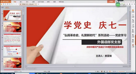 根据学校统一安排部署,外国语部党支部结合自身教育教学工作实际,着手组织支部党员教师开展线上学习、线下讨论、主题日活动等党史学习活动。具体学习活动分为以下阶段进行: