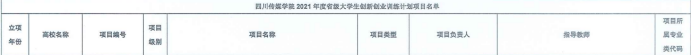根据《四川省教育厅办公室关于开展2021年省级大学生创新创业训练计划立项工作的通知》(川教厅办函[2021]15号)精神,我校组织申报了本年度省级大学生创新创业训练计划项目。经教育厅审核,同意我校立项省级大学生创新创业训练计划项目135项,其中4项由外国语部教师郝雯婧、唐春梅分别指导。具体信息如下: