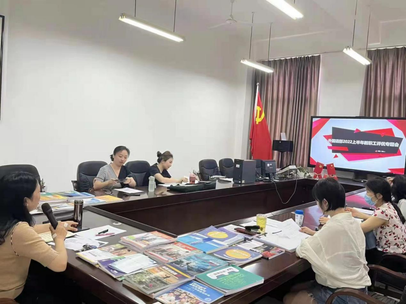 根据外国语部于 2022年5月31日下发的通知要求,截至规定时间,外国语部个人申报评优共计38人。经审核,所有申报人均符合参评资格。6月2日至6月9日,各年级组开会讨论并分类评分,完成了对申请评优教师们的初步评分工作。6月10日,外国语部评优工作小组召开专项会议、按照申报情况与评优比例,对申请教师们的教育教学、科研教改、服务管理等方面进行讨论,综合评议后进行投票,确定部门优秀教职工名单与等级,共评定出 33名部门优秀教职工(含教学管理岗)。经公示无异议后,具体评优名单、等级及相关纸质材料上报学校。