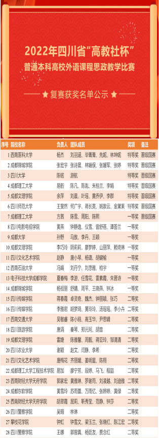 外国语部两个教师团队荣获2022年四川省普通本科高校外语课程思政教学比赛二等奖