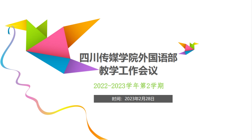 2023年2月28日,四川传媒学院外国语部在A1-314召开教学工作会议,本部门全体教师参会。会议主要围绕常规教学工作、教师队伍建设、相关工作规划与部署三个方面展开。