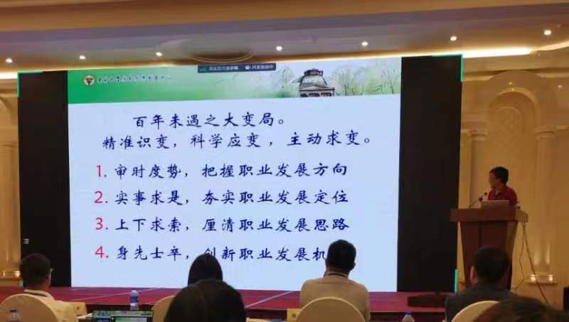 绍兴职业技术学院范蠡商学院院长朱伟芳教授的报告主题为《产教融合背景下高职外语专业(群)建设探索与实践》。朱院长主持浙江省高水平建设专业群、 特色专业、精品课程、哲社科课题等省级教科研项目十余个项目,在职业院校英语课程群建设上有着独到的见解。她讲到,做好顶层设计,明确“建什么”,实行动态调整,明晰“怎么建”,强化绩效考核,确保“建得好,这是对专业群建设的基本认知。最后以绍职院范蠡商学院的成功经验为例,把他们的专业群建设基础,专业群组群逻辑,专业群发展历程,专业群对接的产业一一分享。最后,朱院长提出挑战:正视外语类专业的“生存”现状,专业建设着力点在于如何更好地发挥专业优势,在专业群建设中应注重“有为”还是“有位”?这个问题值得我们所有外语人深思。