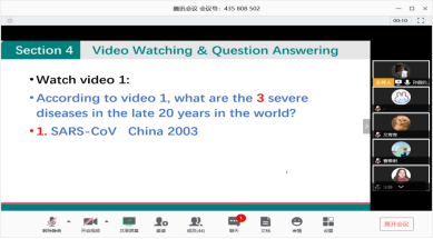 3、孙甜老师采用学习通和腾讯会议相结合的方式进行授课,先让学生们在学习通上在规定的时间内完成任务,然后再在腾讯会议里统一评讲。(见下图)
