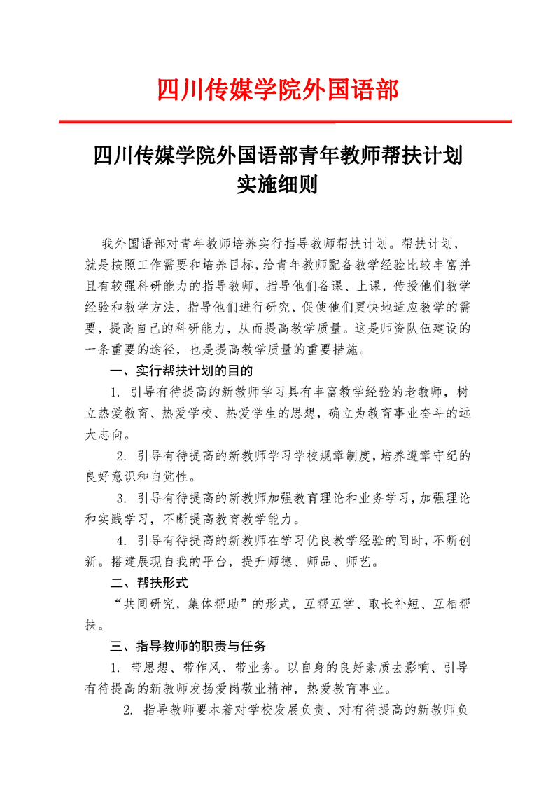 四川传媒学院外国语部青年教师帮扶计划实施细则