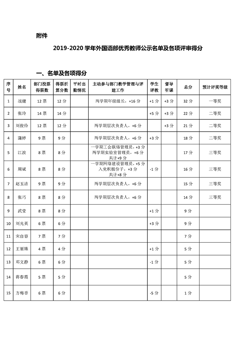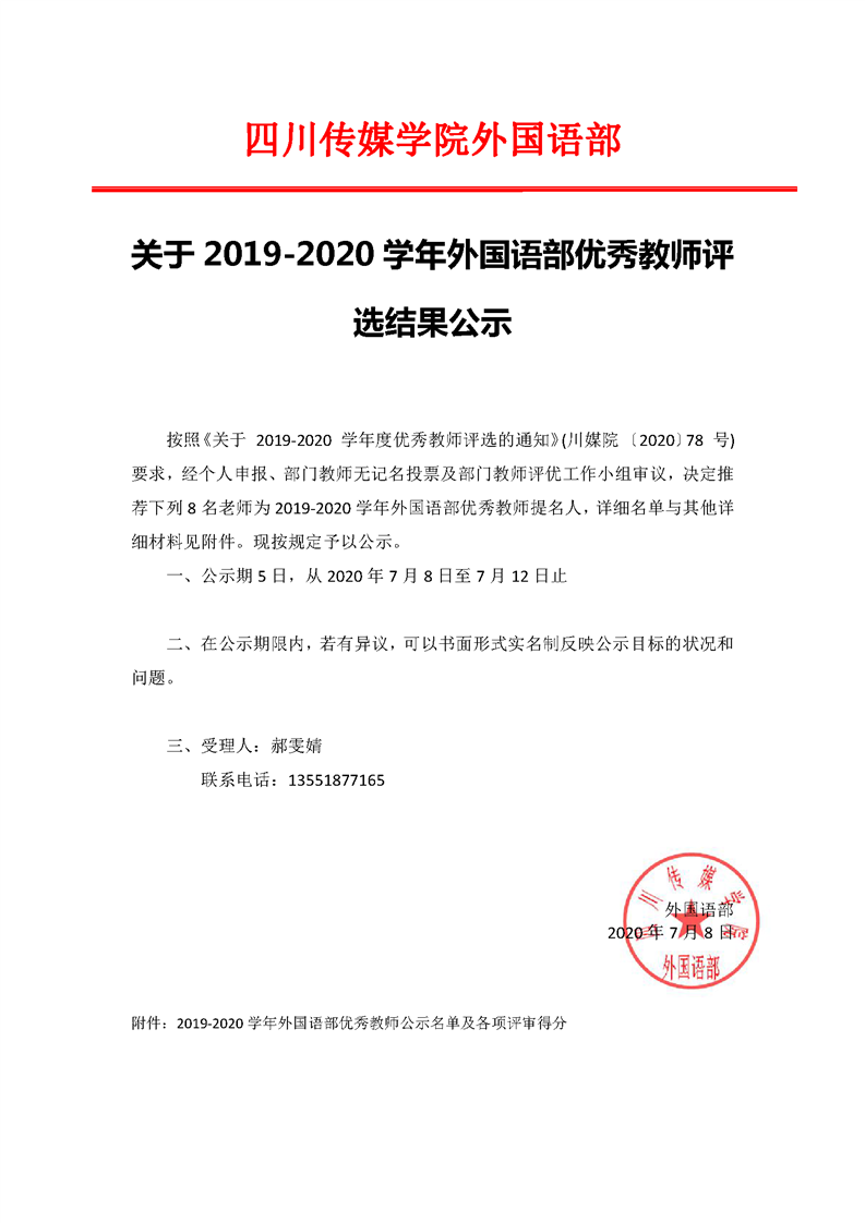 2019—2020学年外国语部推荐“中广电奖教金”提名教师结果公示...