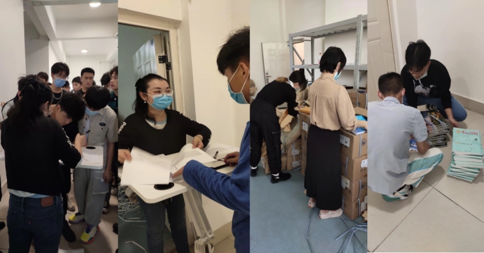 目前,我校大学英语课程施行分层教学,本科ABC层次所使用教材有所不同,需要分发的本年度英语教材品目较多。为了让学生能够顺利拿到与自己所在层次匹配的教材,外国语部积极响应我校“我为师生办实事”的活动号召,组织部门教师协助发放所有英语教材。9月16日至18日,经过部门与教师们的共同努力,21级所有新生的本年度英语教材共计约6000套(3万多本)全部有序发放至学生手中。