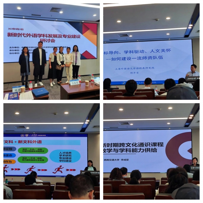 2023年9月23日(周六),由中国英汉语比较研究会外语学科发展研究专业委员会主办,西南交通大学外国语学院承办,译国译民集团协办的新时代外语学科发展及专业建设研讨会在西南交通大学顺利召开。外国语部派6名骨干教师参加研讨会。