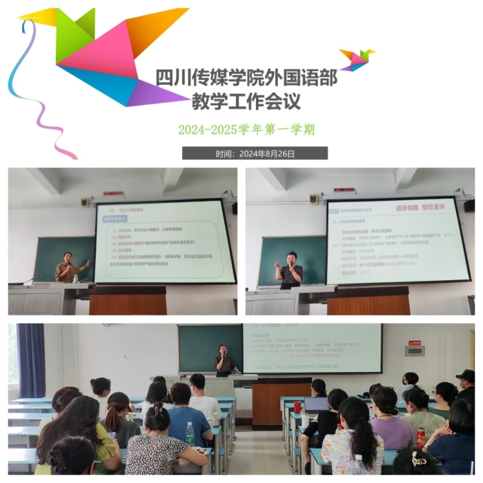 8月26日,外国语部2024-2025年第一学期首次教学工作会议在A1-301召开。本次大会旨在总结上学期工作,为新学期的各项工作进行进一步详细部署。外国语部全体教职工参加了会议。