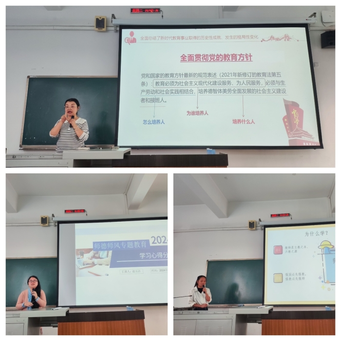 党总支书记指出,师德师风是教师队伍建设的关键,教师们要时刻牢记自己的身份,以高尚的师德为学生树立榜样。她强调,教师要全面贯彻党的教育方针,落实立德树人根本任务,对学生进行正面引导,为培养社会主义建设者和接班人贡献力量。