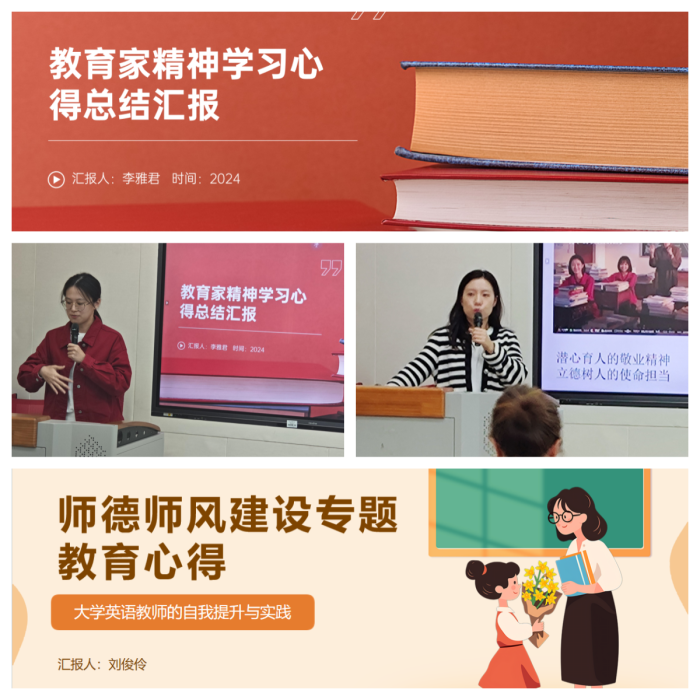 按照四川传媒学院外国语部关于开展师德师风专题教育的工作方案及实施计划安排,外国语部以多种形式开展了为期两个月的师德师风专题教育活动。为进一步巩固学习成果,促进教师之间的交流,外国语部于2024年11月19日在东区A1-413会议室举行了部门师德师风教育总结会,旨在提炼经验、推广优秀,提升教师对师德师风建设重要性的认识。会议中,教师党员及青年教师代表分享了学习心得。