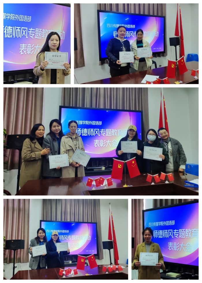 为了树立典型、鼓励先进,推动师德师风建设纵深发展,2024年11月22日,外国语部对在此次师德师风专题教育学习活动中表现突出的先进个人和基层组织进行了表彰,肯定他们在教育教学工作中所做出的努力,尤其是在促进部门师德师风建设中所展现出的模范行为,希望可以激励部门更多的教师以他们为榜样,不断提升自己的专业素养和道德水准,以饱满的热情和责任感全身心地投入到教育事业中,培养出更多具有国际视野、创新精神和社会责任感的学生。