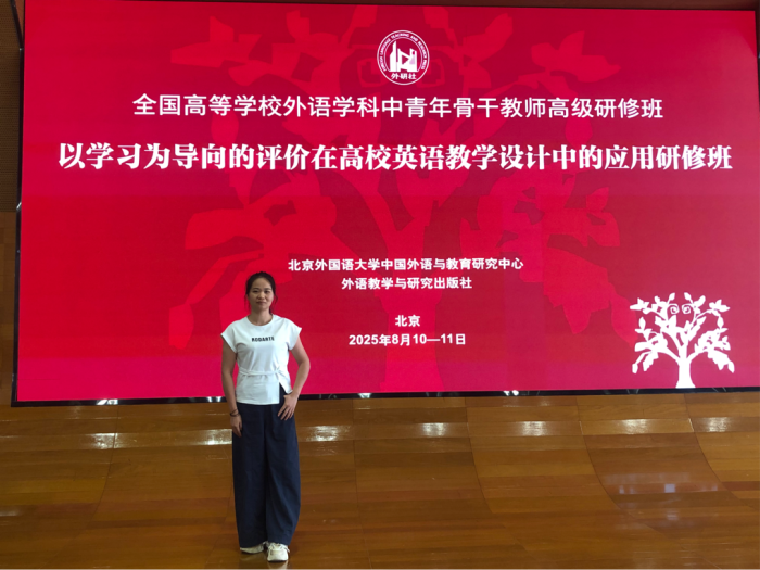 2025年8月10-11日,我校外国语部大学英语第一教研室副主任蒋春霞老师赴北京参加了由北京外国语大学、中国外语与教育研究中心、外语教学与研究出版社、《外语教育研究前沿》编辑部联合主办的“以学习为导向的评价在高校英语教学设计中的应用高级研修班”。