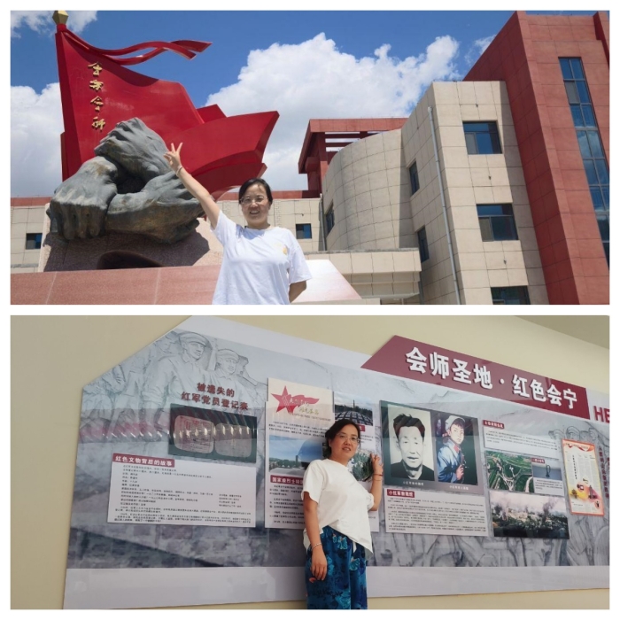 7月27日,教工第一支部蒲婷同志奔赴有着“中国工农红军三大主力会师圣地”之称的甘肃会宁,在这片承载着中国革命光辉历史的土地上,追寻先辈足迹,感悟长征精神之伟力。在巍峨矗立的会师纪念塔前,她驻足凝望,深有感触,“遥想当年红军战士经历千难万险,跨越万水千山,最终实现胜利会师,靠的就是坚如磐石的信仰和顽强不屈的意志。”她逐字阅读着革命前辈留下的题词和碑文,特别是对“团结一致,继承先烈遗志;艰苦奋斗,建设美好家园”的会师精神有了更深的理解。参观会宁会师博物馆让她对长征精神的丰富内涵——坚定的革命信念、紧密的团结协作、无畏的牺牲精神、艰苦奋斗的优良作风以及实事求是的思想路线——有了从未有过的真切体验。蒲婷老师深刻感悟到:“作为一名外语专业的党员教师,我们不仅要精进语言能力,更要深刻理解中华文化、理解党的历史和传统,筑牢自身的‘根’与‘魂’。在引导学生认识世界的同时,更有责任、底气用英语讲好中国故事,特别是讲好中国共产党的故事、中国革命的故事,传承红色基因,让伟大精神跨越时空,激励当代青年树立崇高理想,肩负时代使命。”